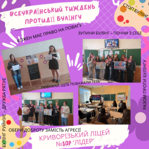 У Криворізькому ліцеї № 107 «Лідер» Криворізької міської ради з 16 по 20 вересня 2025 року пройшов Тиждень протидії булінгу.